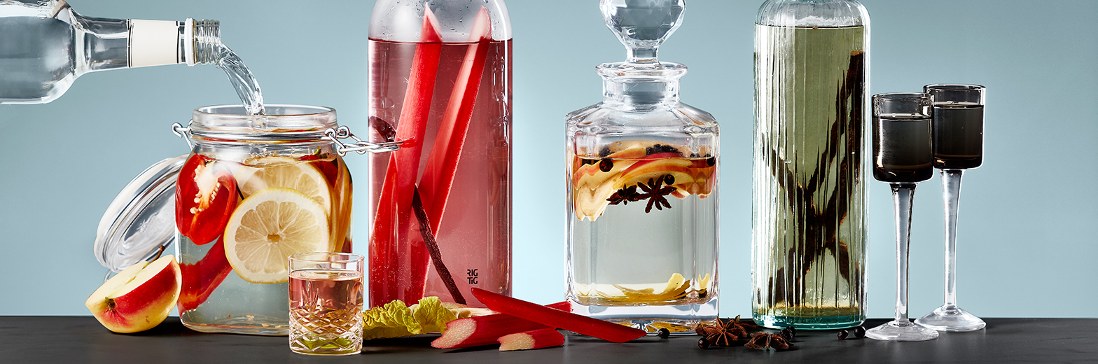 Ingen påskefrokost uden snaps. Men hvorfor nøjes med den klassiske, når det både er nemt og sjovt at smagssætte sin egen? Prøv f.eks. at tilsætte frisk rabarber, som giver et herligt skud sødme, syrlighed og smuk kulør.