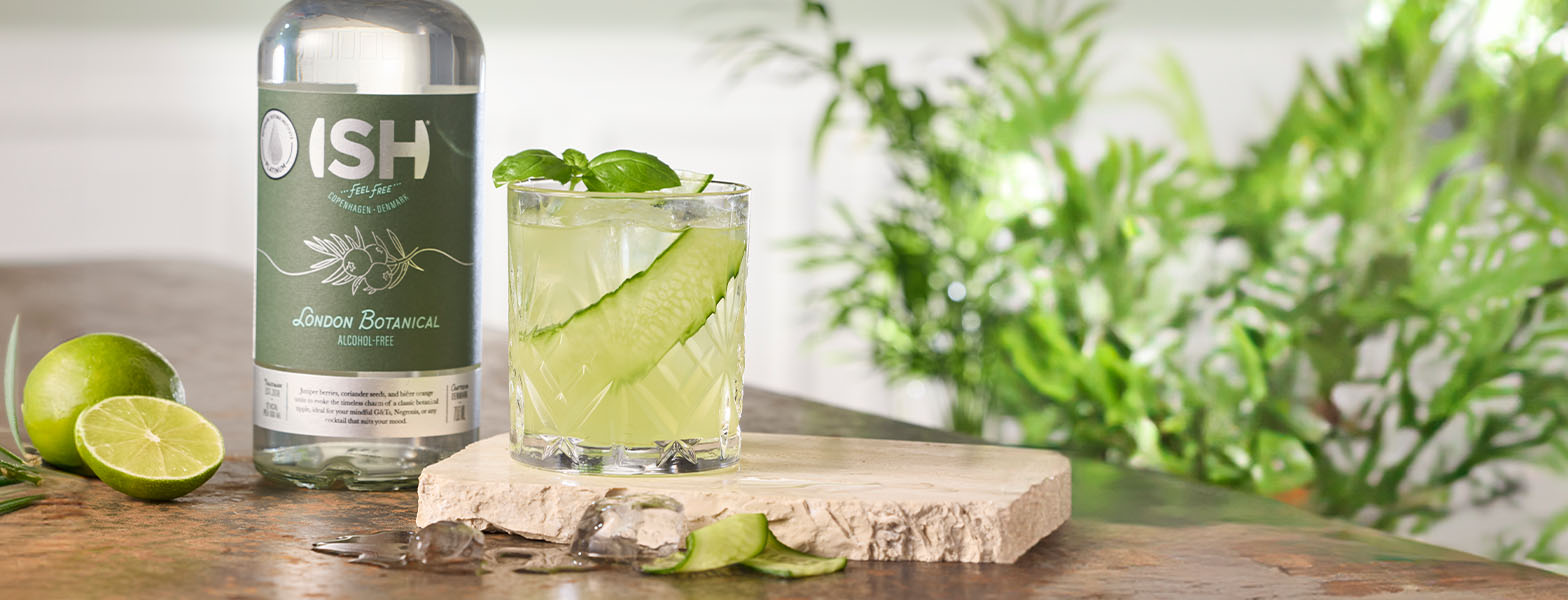 Start med at muddle agurkeskiver, basilikum og ISH London Botanical i en shaker.