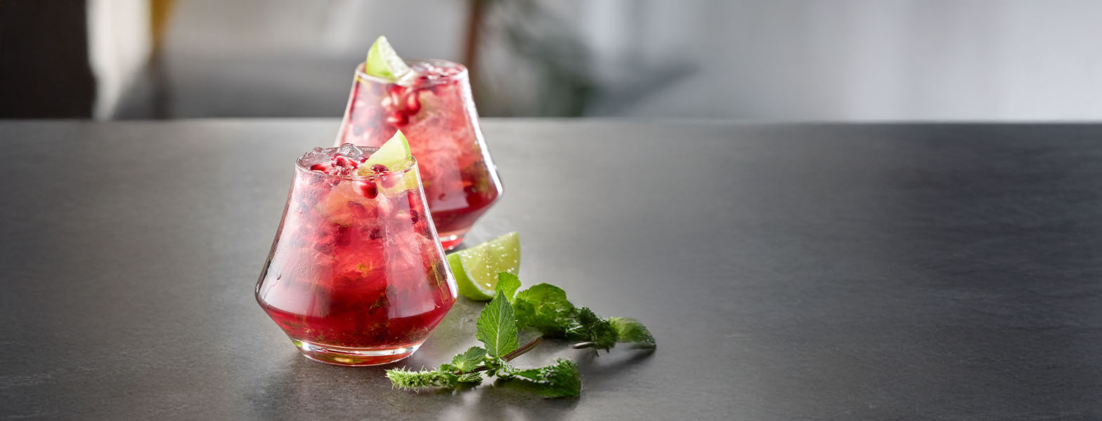 En ultimativ sommer-cocktail til en nybagt juleklassiker, med et twist af tranebærjuice og granatæblekerner. Forfriskende, flot og forrygende julet.