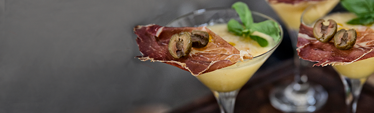 Information Antal 4 anretninger Sådan gør du1 Blend melonstykker, æblemost, havtorn, basilikum, yoZo og ingefær. 2 Parmaskinke og oliven tørres i ovnen ved 170 grader i ca. 12 minutter - men hold lige godt øje med det. 3 Hæld melonblandingen i glassene, kom lidt sort peber og lidt rapsolie på toppen og anret den sprøde skive skinke på siden med oliven. Tip Claus Holm er manden bag HOLM - en serie af lækkert og anvendeligt køkkengrej.
