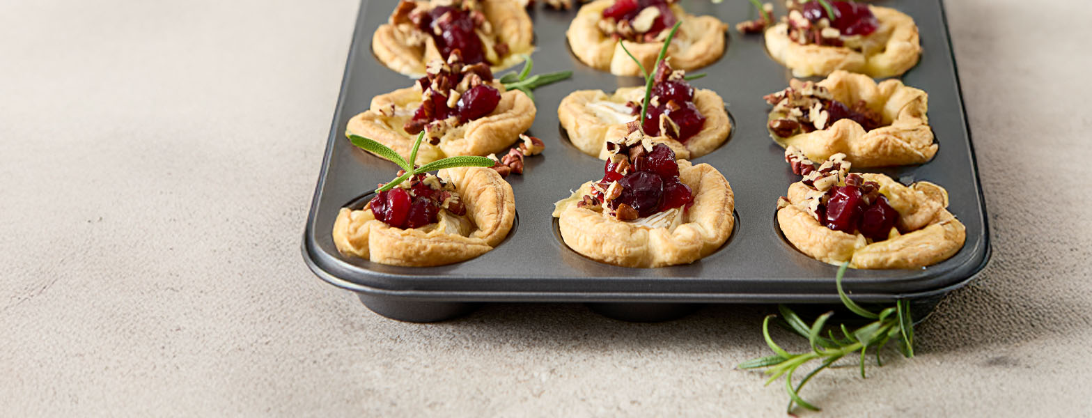 Skal der appetizers på bordet til julefrokosten, så prøv disse lækre bær-, brie- og butterdejsbidder. Du kan næsten høre, hvor bløde og lækre de er, ka’ du ikke?