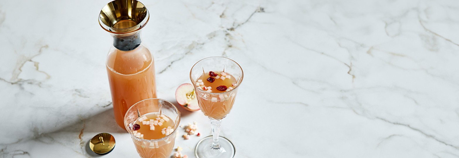 Du kan lave en boblende lækker julecocktail ved at blande gløggekstrakt med kold champagne.