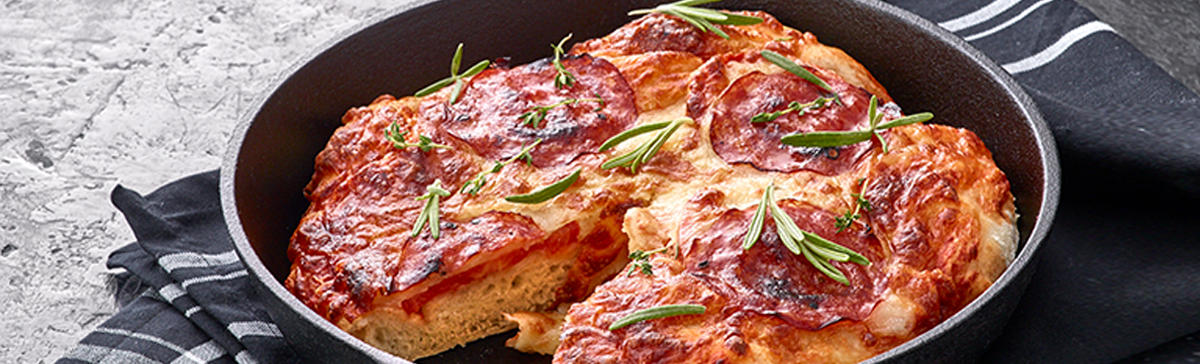 Fyldet lægges på, i følgende rækkefølge: Tomatsauce,