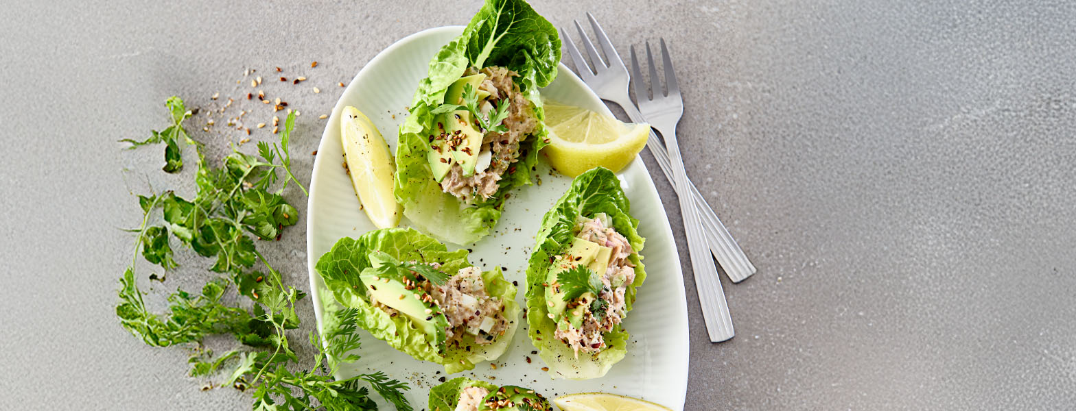 Skær ned på brød uden at gå på kompromis med smagen. Fyld salatblade med tunsalat, avocado og ristede sesamkerner for en nem, sund og lækker snack.