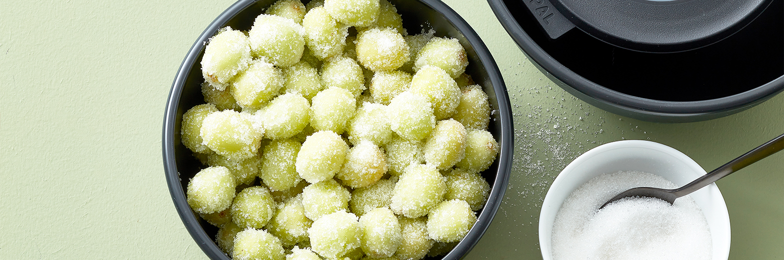 Tilfredsstil den søde tand med lækre frosne druesnacks rullet i et tyndt lag af rørsukker. Et friskt og naturligt alternativ til slik, som du kan lave på et øjeblik.
