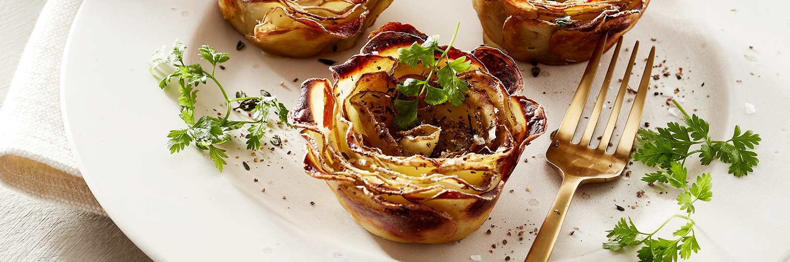 Imponér dine gæster med kartoffelroser. Trods deres komplicerede udtryk, er de utrolig lette at lave, og vil med garanti blive positivt bemærket