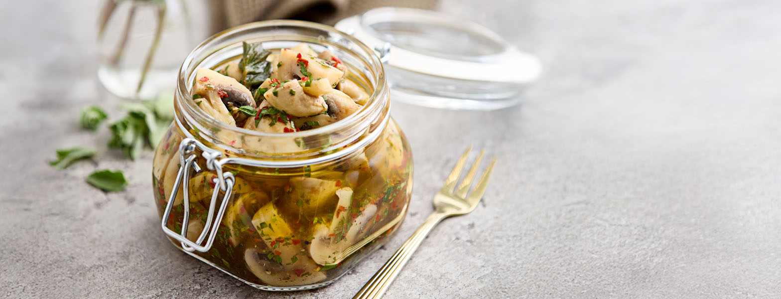 Krydret med hvidløg, citron og aromatiske urter, er disse champignoner både en lækker lille snack og et nemt tilbehør til salater, pasta eller godt brød. Fyldt med umami og smag, gør de hverdagsmåltiderne lidt mere indbydende – lige til at tage frem fra glasset, når lysten til noget lækkert melder sig.