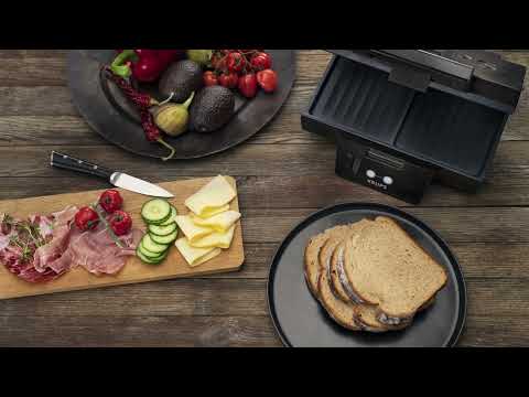 Den stilfulde, sorte sandwichtoaster er nem at bruge og rengøre. Den kompakte størrelse gør den ideel til ethvert køkken, og den skjulte ledningsopbevaring sikrer en ryddelig og elegant opbevaring, når den ikke er i brug.