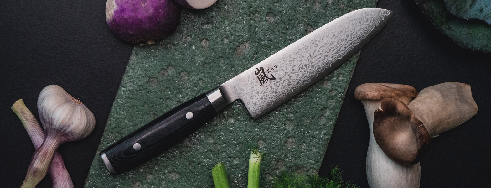 Hver kniv bærer sit navn, trykt eller indgraveret på stålklingen som et ydmygt symbol på stoltheden bag håndværket. Derudover er alle knivene udstyret med de komfortable, slidstærke Micarta-håndtag. Specielt i Ran-serien består klingen af 69 lag stål med et smukt damaskmønstret blad, hvor det japanske navn elegant pryder bladet. Resultatet er ikke blot en funktionel kniv, men et æstetisk mesterværk, der kombinerer traditionelt håndværk med moderne præcision.