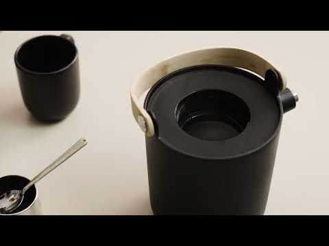 Den smart te-termokande fra Eva Solos Nordic Kitchen er lavet i et stilrent skandinavisk design med indbygget te filter. Materialevalget af kunststof, rustfrit stål og bambus sammen med de rene linjer giver tekanden et smukt og minimalistisk udtryk, der passer ind i det moderne hjem. Inspirationen til selve termokanden er fundet i den klassiske tekande, og derfor er det nemt at kende forskel på te- og kaffetermokanden, når begge er på bordet. Når din te er færdig med at trække, tager du bare det løse filter op, og der kan nu skænkes en skøn kop varm te. Når termokanden er skyllet ren og klar til at komme ind i køkkenskabet, kan du vippe det fine bambushåndtag ned langs siden på kanden, så den fylder minimalt i skabet. Termokanden er 100% drypfri, så du skal ikke bekymre dig om skjolder på dit bord, og termoindsatsen sørger for at holde din te varm længe. Håndtaget vedligeholdes ved regelmæssig oliering.