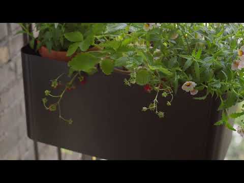 Kapillærmåtten fordeler vandet jævnt, og du undgår både over- og undervanding. Simply Grow altankassen er fremstillet i pulverlakeret galvaniseret stål og kunststof, hvilket gør den robust og modstandsdygtig over for vind og vejr. Den kan derfor stå ude hele året rundt. Altankassen er designet af Tools Design og er nem at montere med den medfølgende bøjle og velcro-stropper.
