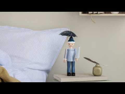 Kaj Bojesens kendte træfigurer inspireret af H.C. Andersens magiske eventyr er nu blevet udvidet med selveste Ole Lukøje (sandman på engelsk), som er iført en lyseblå natskjorte sammen med mørkeblå natbukser, tøfler og en lille fin hue. Ole Lukøje har naturligvis også en paraply - han har faktisk to i Kay Bojsens udgave - en der er åben, og en der er lukket. Ole Lukøje er drejet i FSC-certificeret bøgetræ og malet og trykt manuelt med stor præcision og omhyggelighed, som også kendetegner Kay Bojesens træfigurer. Selve designet er baseret på de originale Ole-figurer fra Kay Bojesens arkiv. Designet er minimalistisk men på samme tid også fuld af drømmende magi, liv og sjæl. Den perfekte gave til dåbsbarnet, fødselaren eller samleren. Lad Ole Lukøje stå på natbordet eller inde på børneværelset og sprede glæde og søde drømme.