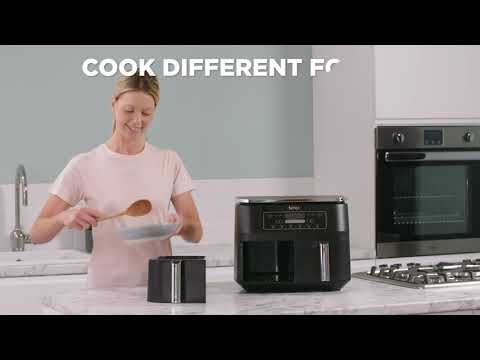Lav mad på en hurtigere og mere effektiv måde med Ninja Foodi Airfryeren med to skuffer, så du kan tilberede to forskellige madvarer på samme tid! Og selvom det er to forskellige madvarer der tilberedes, er de færdige på samme tid. Airfry eller dehydrer i to uafhængige kogezoner! Så genopvarm rester, bag boller og kage eller steg en kylling - du kan det hele med en Ninja Foodi Airfryer!