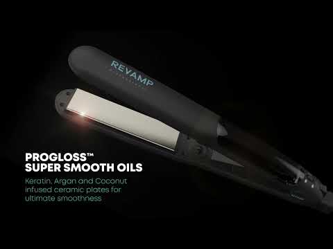 - Progloss™ superglatte olier keratin-, argan- og kokosolie-infunderede keramiske plader for den ultimative glatte effekt