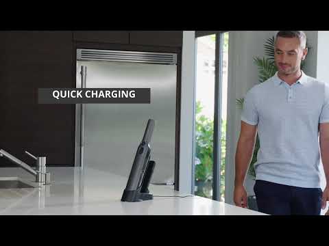 Det er en fiks støvsuger til de mindre og hurtige opgaver, om det er hundehår, krummer eller andre rengøringsopgaver. Drifttiden er 8 minutter og støvsugeren anvender HEPA-filter. Der medfølger 2 mundstykker, et bredt og et tyndt som også kan udvides med små børster, så den er velegnet både til steder, hvor det er svært at komme til og til fx persienner ved vinduet. Støvsugeren står i den medfølgende ladestation, når den ikke bruges, og der er der også plads til tilbehøret, så det altid er i nærheden, når det skal bruges. Ved at placere støvsugeren i laderen sikrer man samtidig, at den altid er opladt og klar til ”kamp”. Efter brug trykker man blot på knappen foran på støvsugeren og derved tømmes rummet, hvor alt støv og snavs er opsamlet - nemt og lige til.
