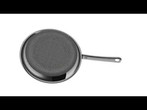 - Den forhøjede honeycomb-struktur af rustfrit stål på stegefladen beskytter pandens non-stick forsegling